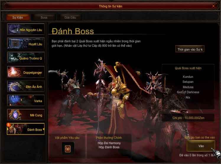 Nhấn Ctrl+T chọn Đánh Boss rồi vào , phí 10 triệu zen cấp 800 trở lên đã hoàn thành nhiệm vụ Lớp (4)