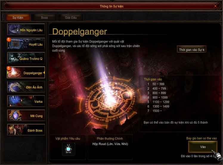 Nếu nhân vật có trạng thái PK, sẽ không được vào Doppelganger