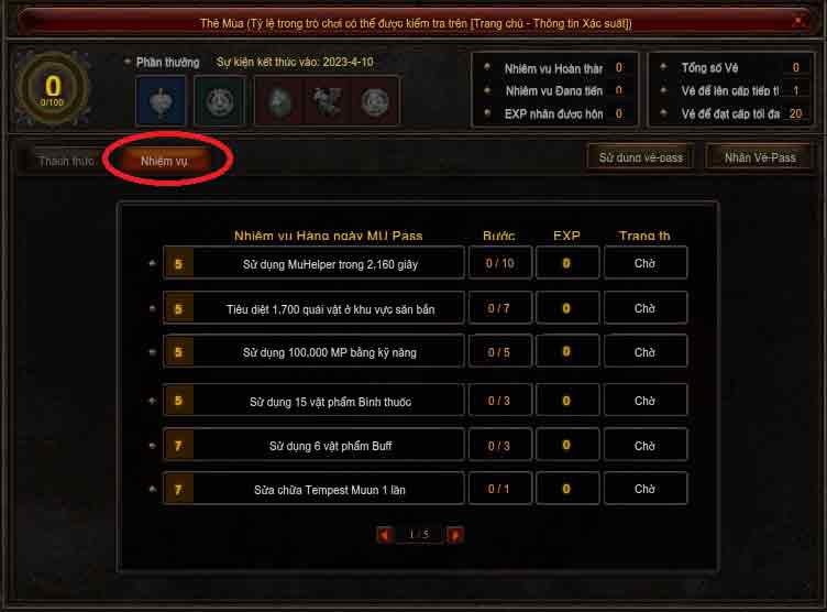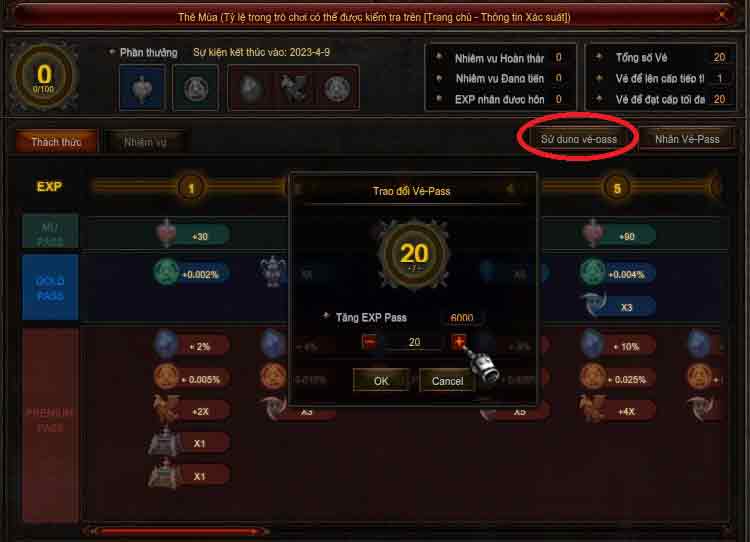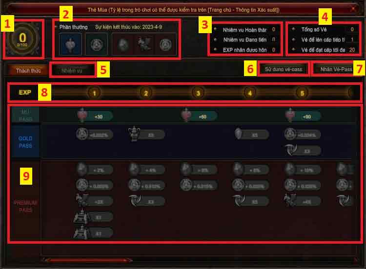Kiểm tra nhiệm vụ của Thẻ Mùa và kinh nghiệm nhận được