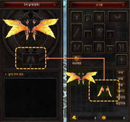 Việc lắp/tháo lõi cánh chỉ có thể thực hiện trên Cánh (5) đang ở trong hành trang, không thể thao tác trên cánh đã được trang bị