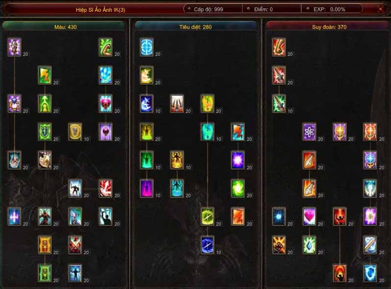 | 6 | Illusion Blade Mastery | Khi dùng Illusion Blade,khi gây ST cho quái,tất cả ST nhận vào từ quái sẽ tăng 5% | |