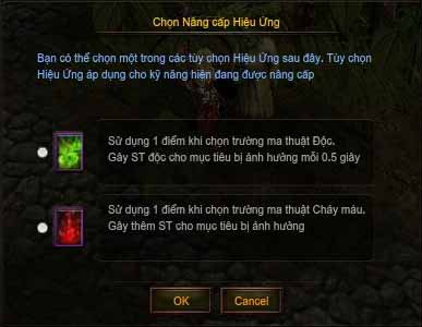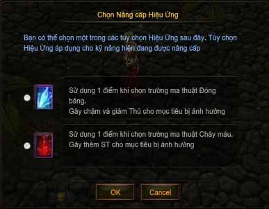 Mỗi Kỹ năng có thể chọn 1 trong 2 hiệu ứng trong tổng số 3 hiệu ứng sau: