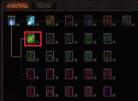 Kỹ năng chính: tính năng tăng cường kỹ năng sẽ được áp dụng khi sử dụng Kỹ năng cường hóa chính theo hàng cây được kết nối