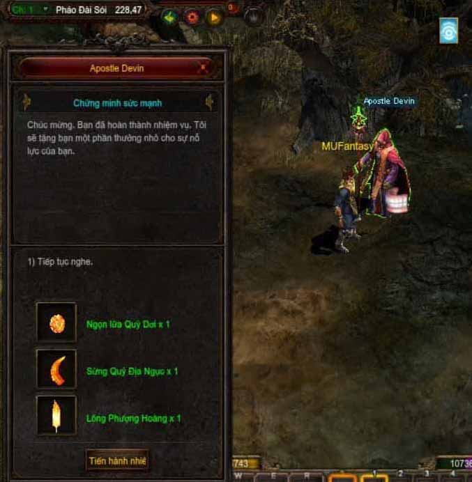 Phần thưởng: Được 20 điểm chỉ số, Thăng cấp Lớp (3), Dùng được Cánh (3), Mở được bảng M3 (phím tắt 'A')