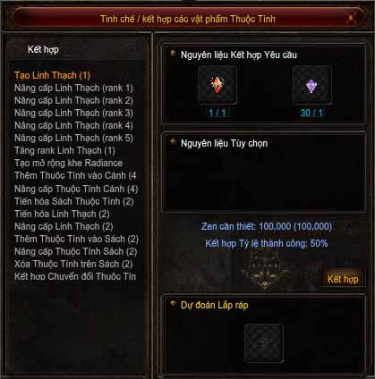 Nguyên liệu: 1 Linh Thạch (1) + Đá Thuộc Tính