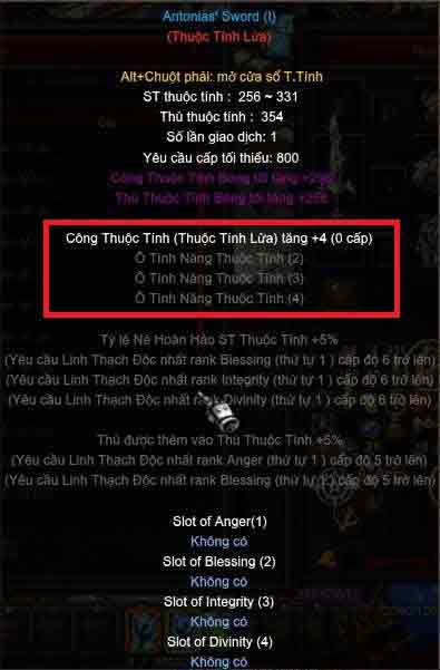 Sách Thuộc Tính (2) chỉ gắn được Linh Thạch (2) trừ Linh Thạch Thánh Quang (Radiance)
