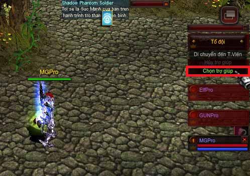 Thành viên trong tổ đội muốn tự động theo trưởng nhóm phải thực hiện các bước sau:Các thành viên trong nhóm nhấn chuột phải + Alt vào Nhóm trưởng ở khung Tổ đội