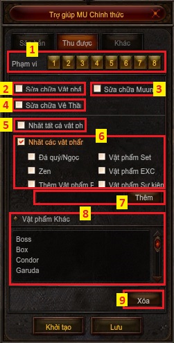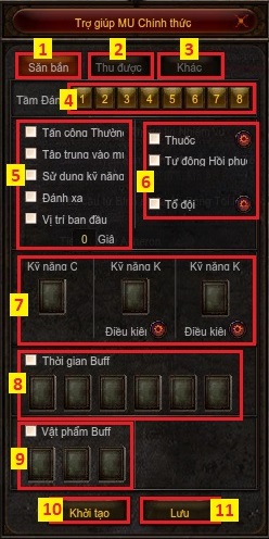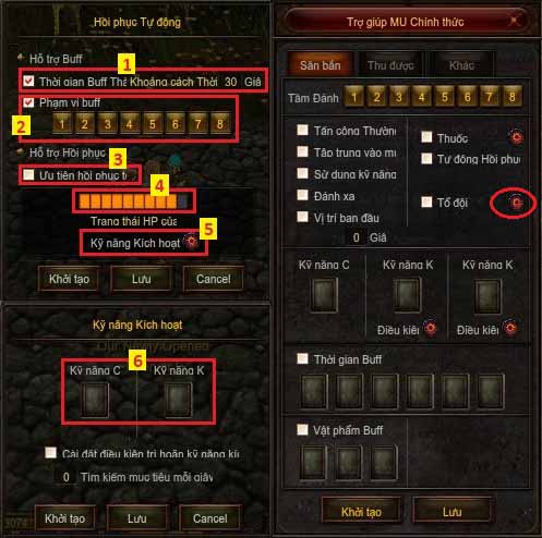Trợ giúp MU là một tính năng hỗ trợ trong MU Online giúp người chơi tự động hóa một số tác vụ trong game, giúp tiết kiệm thời gian và tăng cường trải nghiệm chơi game. Tính năng này có thể được sử dụng để giúp nhân vật tự động chiến đấu, thu thập vật phẩm, luyện level và nhiều tác vụ khác.Cấu hình