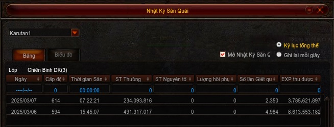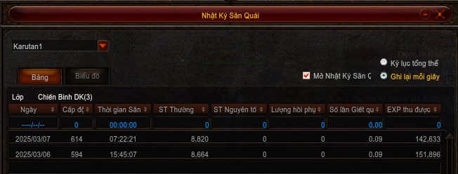Thống kê theo Bảng (Tổng thể hoặc trên mỗi giây)