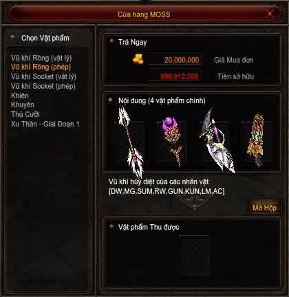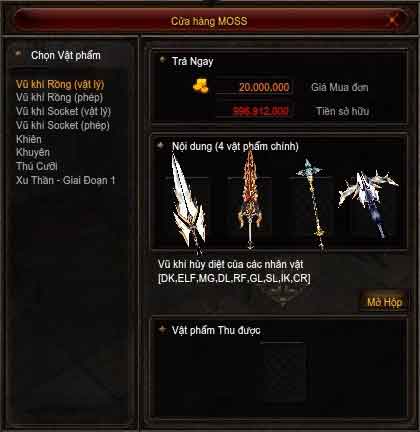 Tham gia quay moss chọn Vũ khí Rồng vật lý hoặc phép